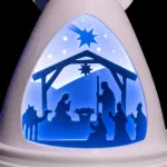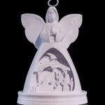 An elegant angel night light featuring a delicate nativity scene, beautifully illuminated by a soft, warm LED glow. Thoughtfully designed to create a peaceful and comforting atmosphere, it’s perfect for bedside tables, nurseries, or seasonal décor.